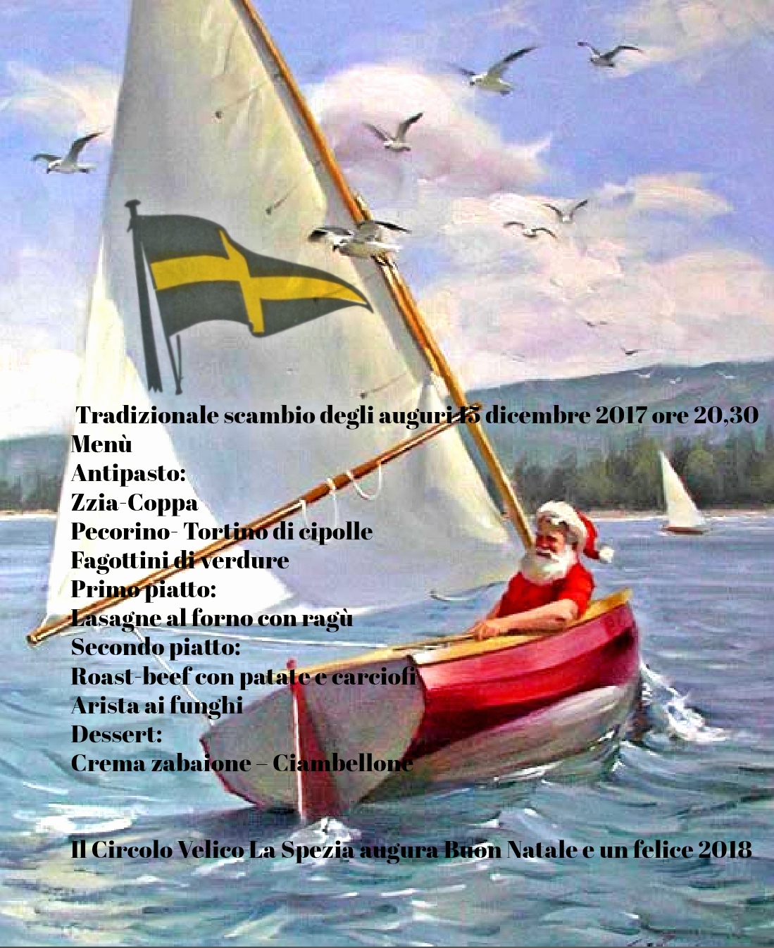 il tradizionale scambio degli auguri sarà fatto nella sede sociale venerdì 15 dicembre p.v. con un aperitivo con servizio a buffet (a partire dalle ore 20,30) e con una cena preparati dalla chef Anna Baldini.