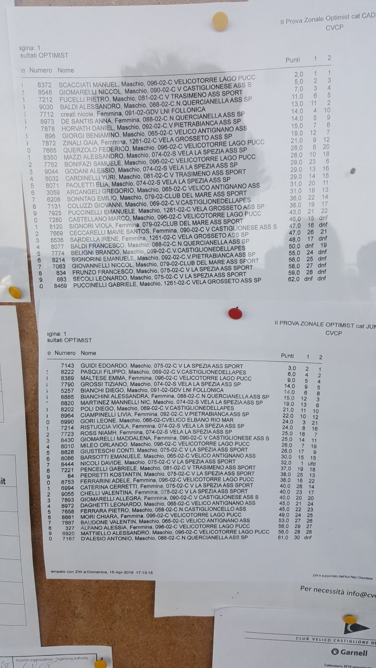 A distanza di una settimana dalla trasferta di Viareggio, in occasione della quale Edoardo Guidi si era imposto nella classe Optimist categoria juniores, a Castiglione della Pescaia bissa il successo, vincendo, con un perentorio secondo e primo nelle due prove disputate, la seconda tappa del Campionato Zonale classe Optimist.