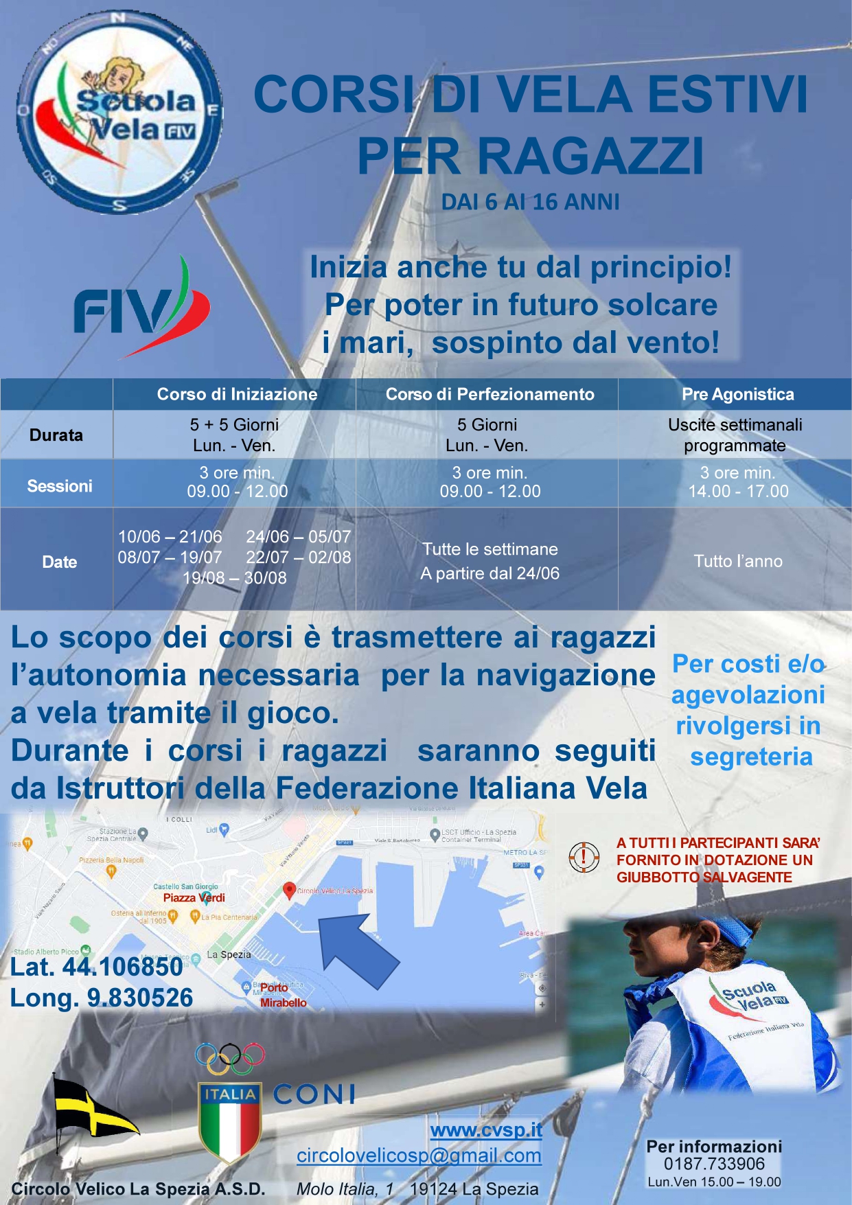 Informazioni relative ai Corsi Vela per l'Estate 2024.