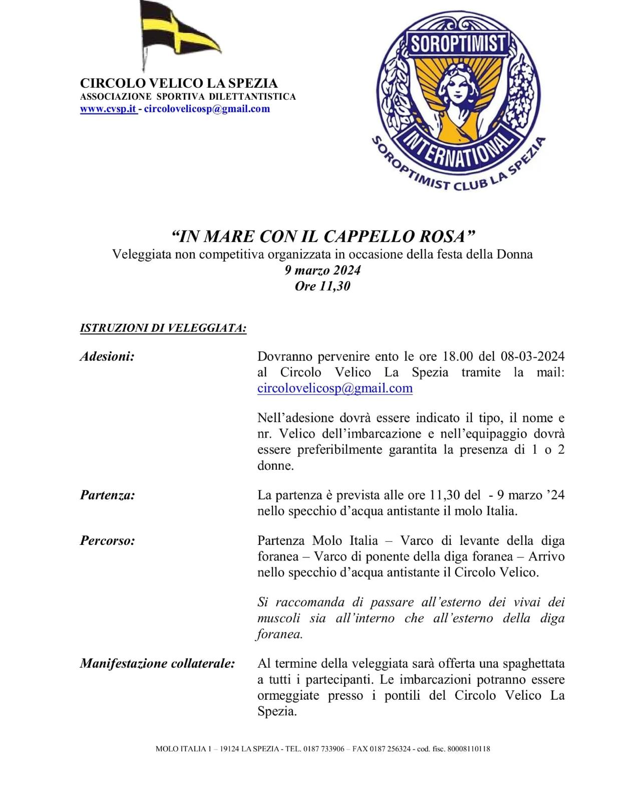 Le Iscrizioni dovranno pervenire entro le ore 18.00 del 08/03/24 al circolo velico